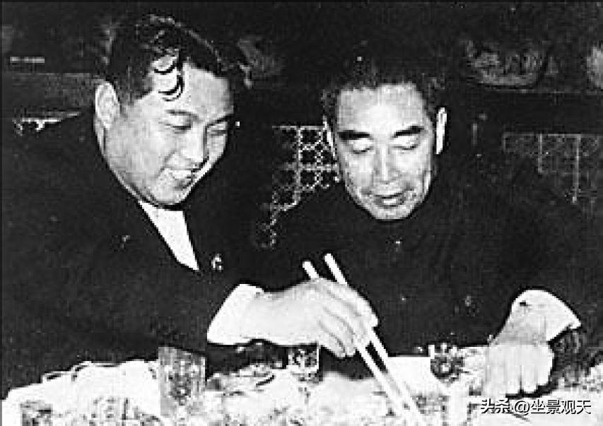 【在朝鮮宴席上的周總理和金日成】