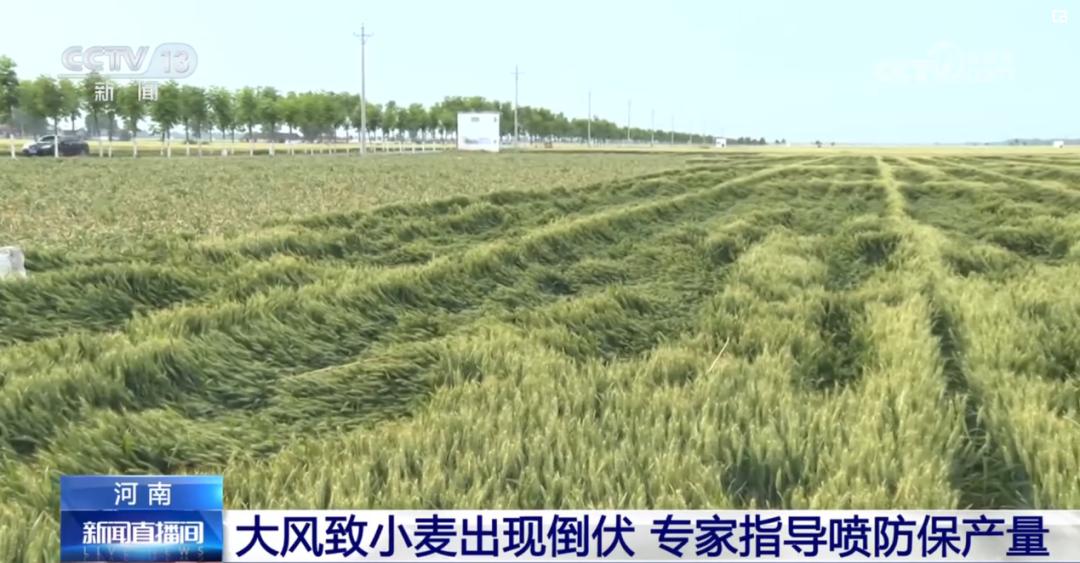 2024年5月14日河南省部分區域大風致小麥倒伏 (圖片來源:中國三農報道)