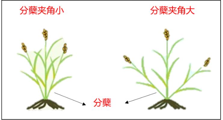 分櫱指的是禾本科等植物在地面以下或近地面處所發生的分枝。通常來說,分櫱夾角過大會導致植株匍匐狀生長、抗倒伏能力差,分櫱夾角適當減小使得植株莖幹直立、抗倒伏能力增強。分櫱數過多則容易引發作物羣體密度增加、養分競爭加劇,導致作物莖稈變輕、變細,莖稈強度減弱、支撐能力下降,抗倒伏能力減弱。