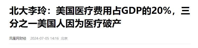 這事還不是孤例,北大教授李玲說,美國醫療費用佔比20%,1/3的美國人因爲醫療破產。