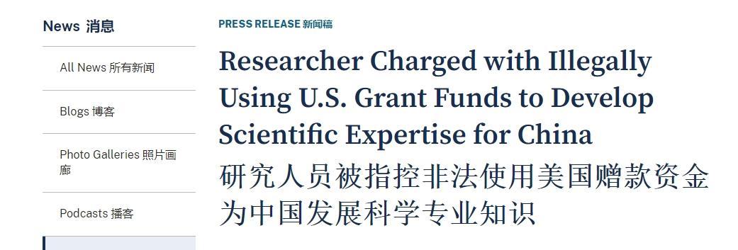 但是,中國行動計劃開始後,鄭頌國遭到FBI和司法部調查,同時要求他不能去實驗室,不能去辦公室,這就相當於他的工作無法開展,而當時遭受迫害的又不止他一人,所以他非常害怕,就試圖回國。結果卻被FBI以電匯欺詐逮捕,罪名不重要,重要的是,一旦罪名成立,將面臨最高20年監禁,25萬美元罰款。其實這個罪名,就是嚇唬他的,迫使他認其他的罪,比如:最後他承認在申請NIH可研究基金時,掩蓋他與中國的研究機構之間的關係和合作。美國說他是拿着美國的研究經費,幫助中國從事風溼病和免疫學領域的研究。
