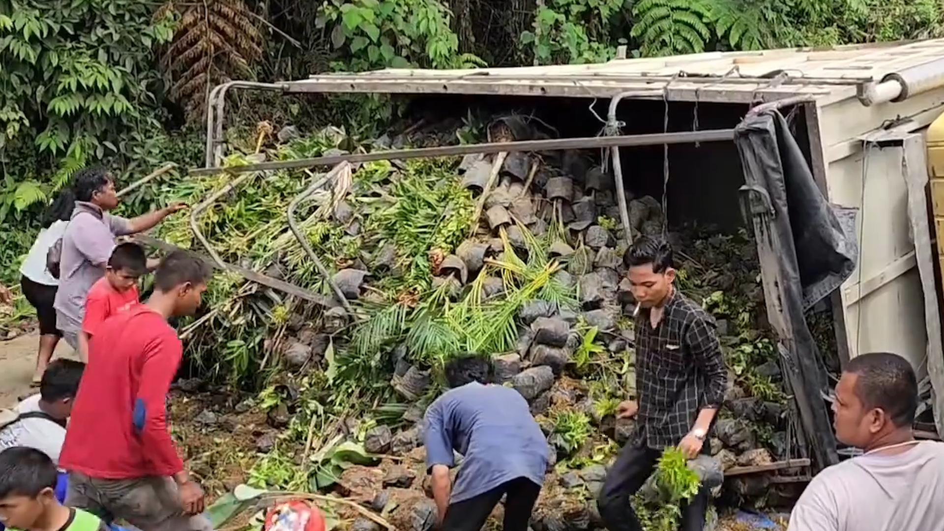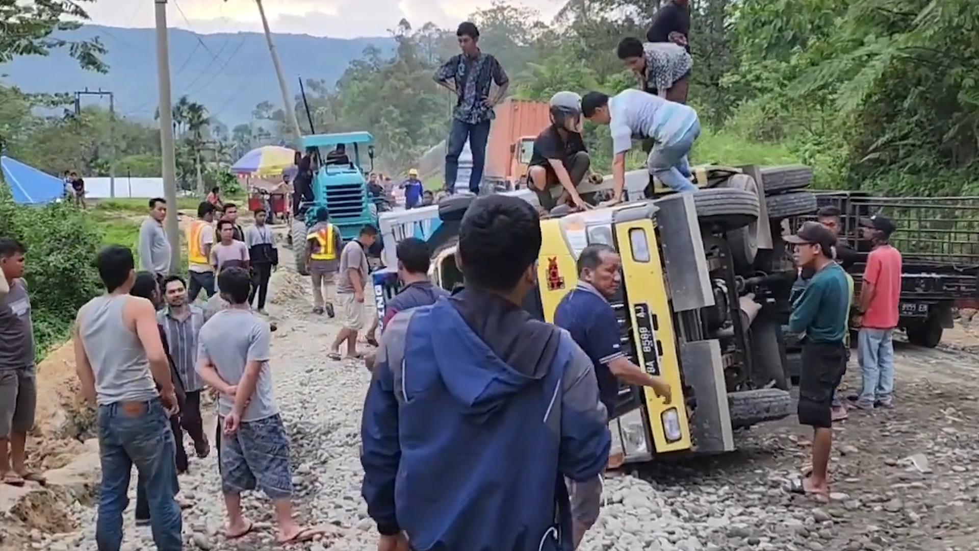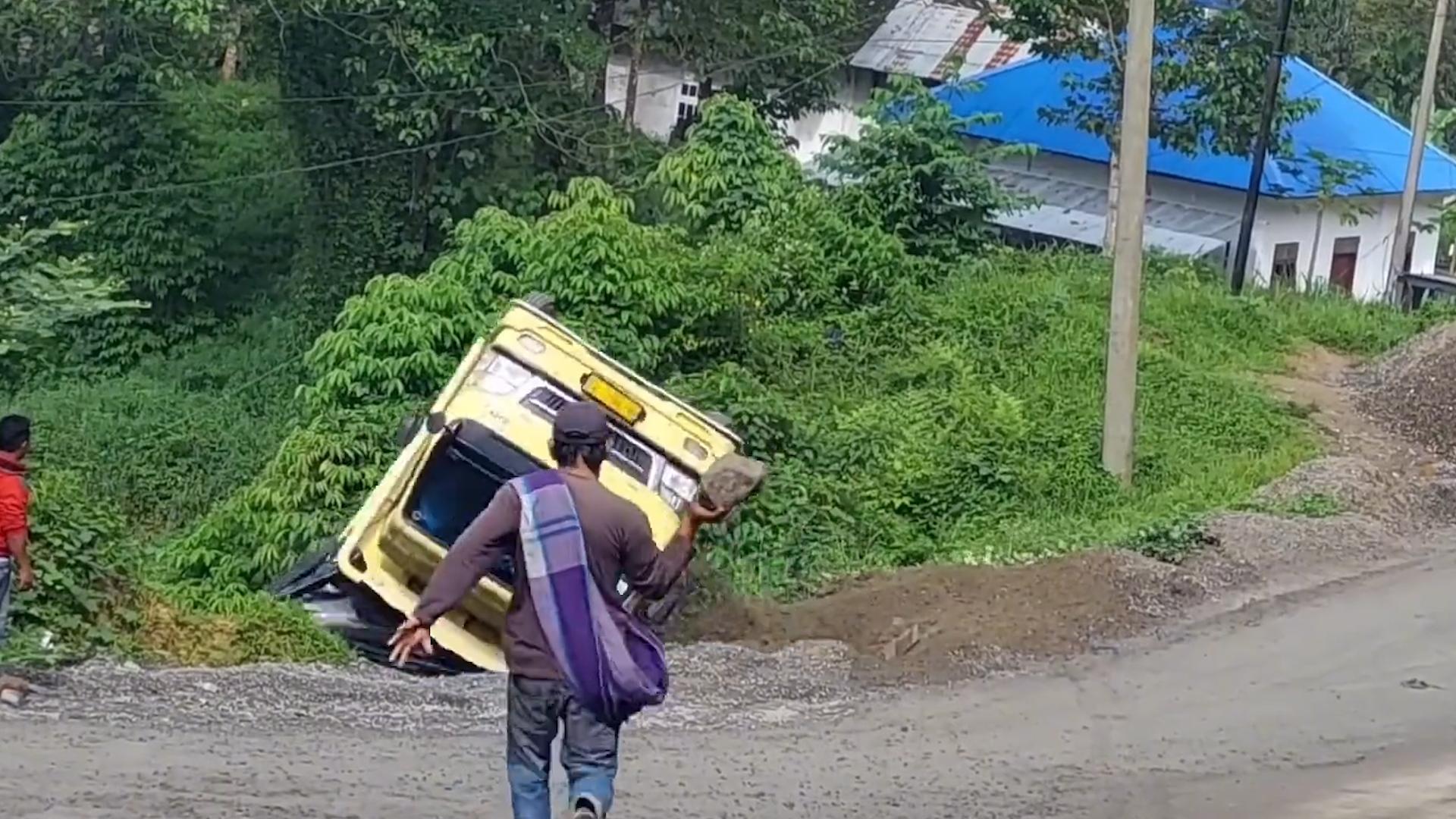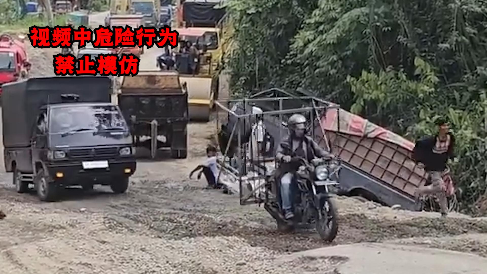 走這條路太費車,摩托需要人抬着過,半掛在這撒了貨 ,大巴來了能趴窩!說的就是印尼網紅坡!一個能拉動全村GDP的致富坡!別的路段半年未必翻一次車,放這個地方排着隊翻車,不知道國內的SUV有幾個能安全通過,每次老司機拉貨,一到網紅坡就膽戰心驚,比如視頻中的小黃,副駕的人嚇跑路,司機剎不住,村民拿着石頭想攔住,可貨車不受控制非要草叢杵!另一位也是喫力不討好,踩着油門繼續坡上彪,結果現場上演一石二鳥,車尾與壓路機來個親密接觸,車頭撞瘸刮平機的“腳",自己躺平路中間擋道,讓車主上演百米速跑!