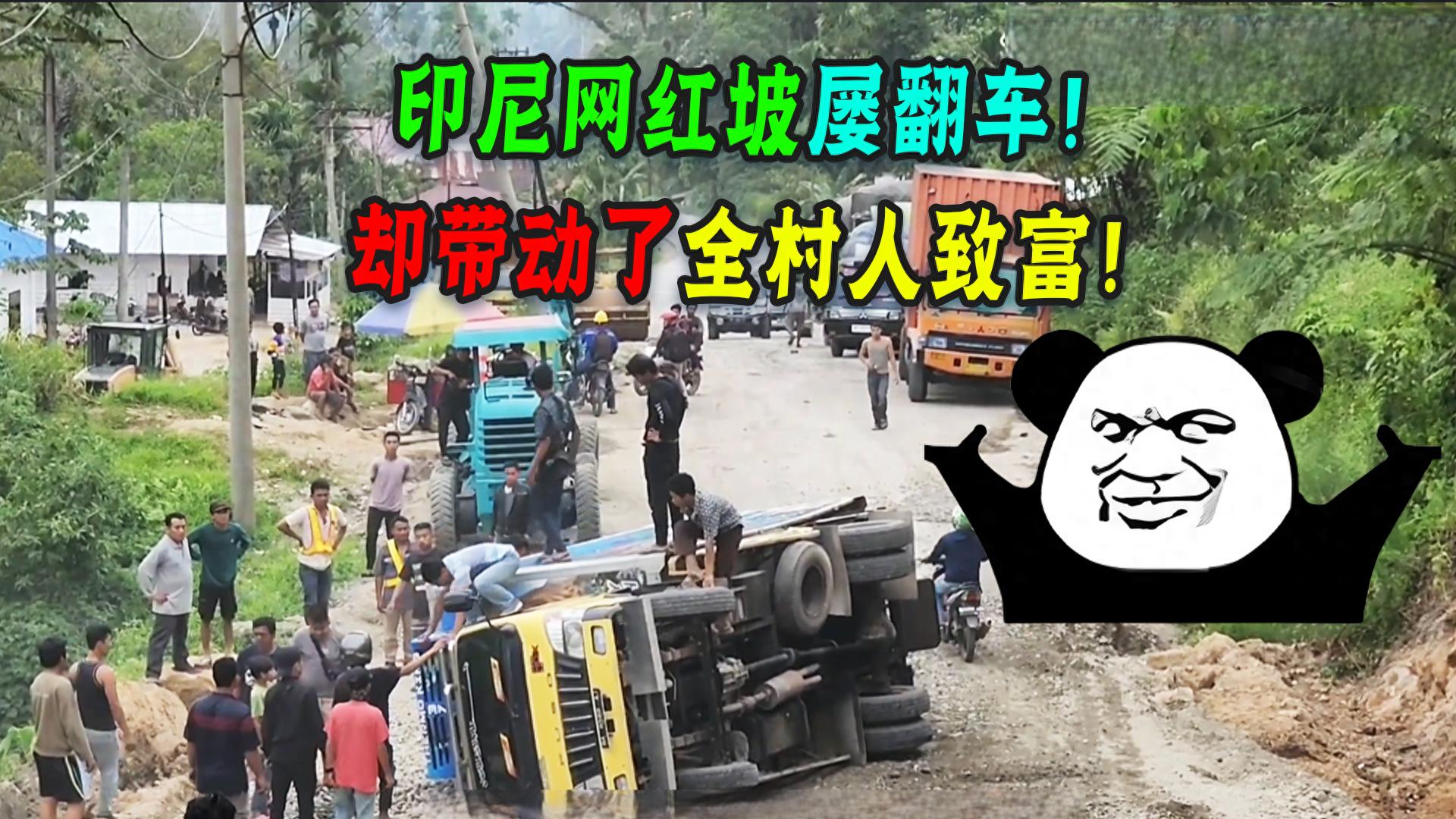 這種路放中國壞三年是恥辱,但在印尼能致富!網紅坡的長度雖短,可出了四年事故,村民習以爲常天天守株待兔,不圖別的只爲有償救助,吊車踮石頭補車胎住宿,本拍視頻網絡傳播,提升當地知名度,現成的素材零成本黑紅也是紅!每天過路的司機也是明知翻車頻發,依舊義無反顧,因爲這是進城的必經之處,註定無法繞路!所以走網紅坡的車輛不計其數,十次過能出九次意外,幸運的那個眼睛一閉油門一踩,只要沒超載,就不會溝裏栽!在當地人看來出事的司機之所以失敗,一怪路不平,二是技術菜,三來愛超載!