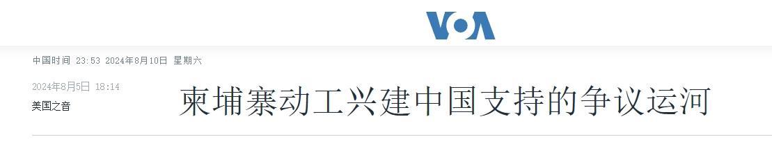 這一次同樣不例外。德崇扶南運河剛開工,《美國之音》就說,人們擔心運河對環境的影響,以及美媒常用的武器“中國債務威脅論”。