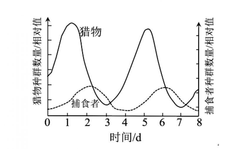 即被捕食者數量增多,捕食者的數量也會隨之增多;但捕食者的數量增多後,食物需求量增大,被捕食者數量又會減少;之後,捕食者的數量也會隨之減少,被捕食者的天敵威脅減少,數量又會再次增多,如此循環往復。