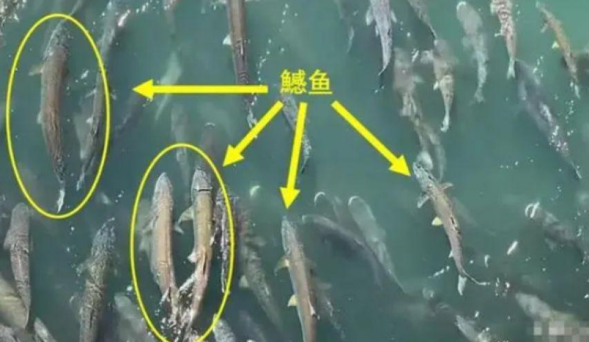 但很快也有眼尖的羣衆發現,這個龐大的魚羣裏,穿梭着有許多體長快兩米的大鱤魚。