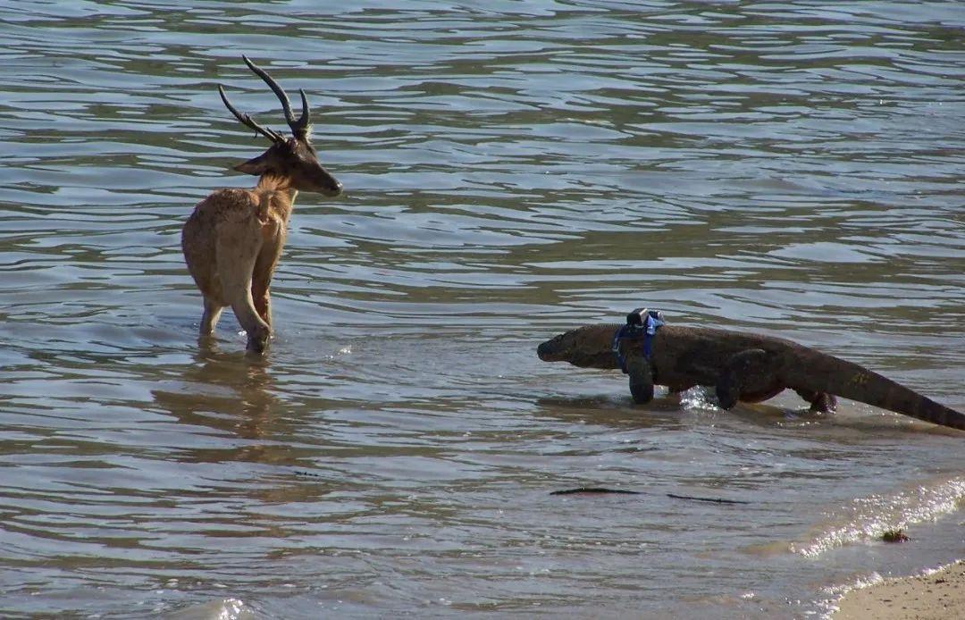 正在捕食一隻鹿的科莫多巨蜥 (圖片來源:Wikipedia)