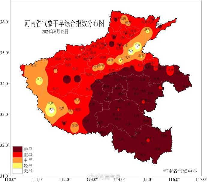 在剛剛過去的2024年6月,河南數次因爲大旱登上熱搜。河南省應急管理廳防汛抗旱處表示,2024年5月,河南省降雨量比正常情況少70%以上,且50%以上的氣象監測站點達到了中旱以上等級。2024年6月12日河南16個地市監測到氣象乾旱達到重旱等級以上,並持續10天。