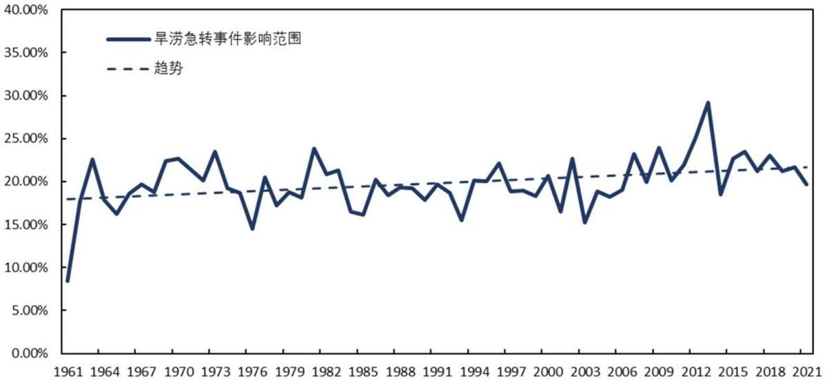 1961—2021 年中國受旱澇急轉事件影響範圍及趨勢 (圖片來源:參考文獻2)