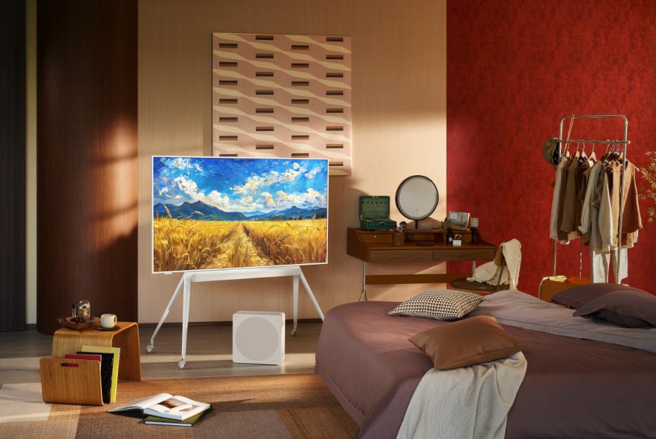 打開這臺藝術電視,就能享受到畫布屏帶來的紋理顯示效果,畫面質感一絕。屏幕表面添加納米微晶塗層,可以有效抵抗環境光對畫面的影響,還有量子點Pro 2024技術,可以覆蓋更廣闊的色域,讓色彩顯示更加貼近本真。它還有一個AI Art名畫創作功能,可以三秒鐘就創作出一幅AI藝術畫,配合上前邊的那些視覺技術,真的是好看又好玩。