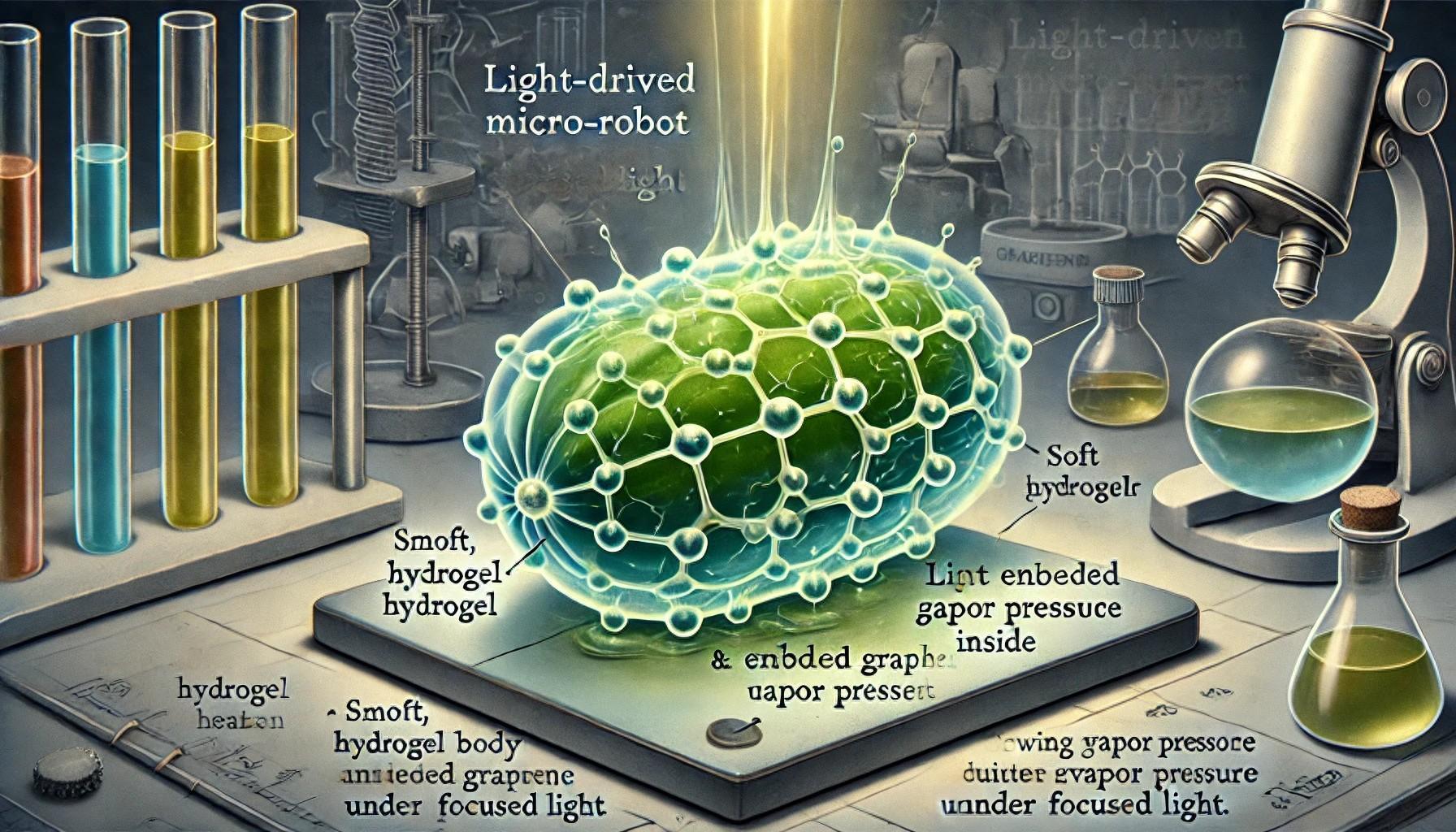 研究團隊開發的發射器使用了一種特殊的材料——水凝膠,其中嵌入了石墨烯。當高能量的光照射到這個發射器上時,石墨烯受熱會迅速將水凝膠中的水轉化爲蒸汽,產生強大的壓力。這種壓力最終會讓水凝膠膨脹並破裂,將機器人像“子彈”一樣發射出去。