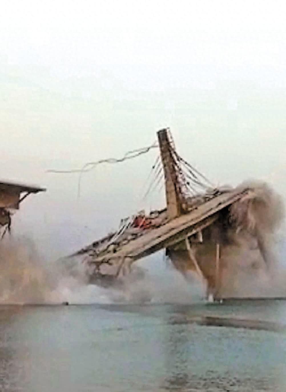 印度一看,這劇情我熟啊,不就是橋塌了嗎,沒事,繼續修,然後吭哧吭哧又修了一年,講真,我都被印度鍥而不捨的精神給感動了,結果呢,這橋這幾天又塌了,由於恆河水位上漲,橋樑受到水流壓力不斷上升,第9號石柱和10號石柱之間的橋樑,又塌了,進度就差清零了。