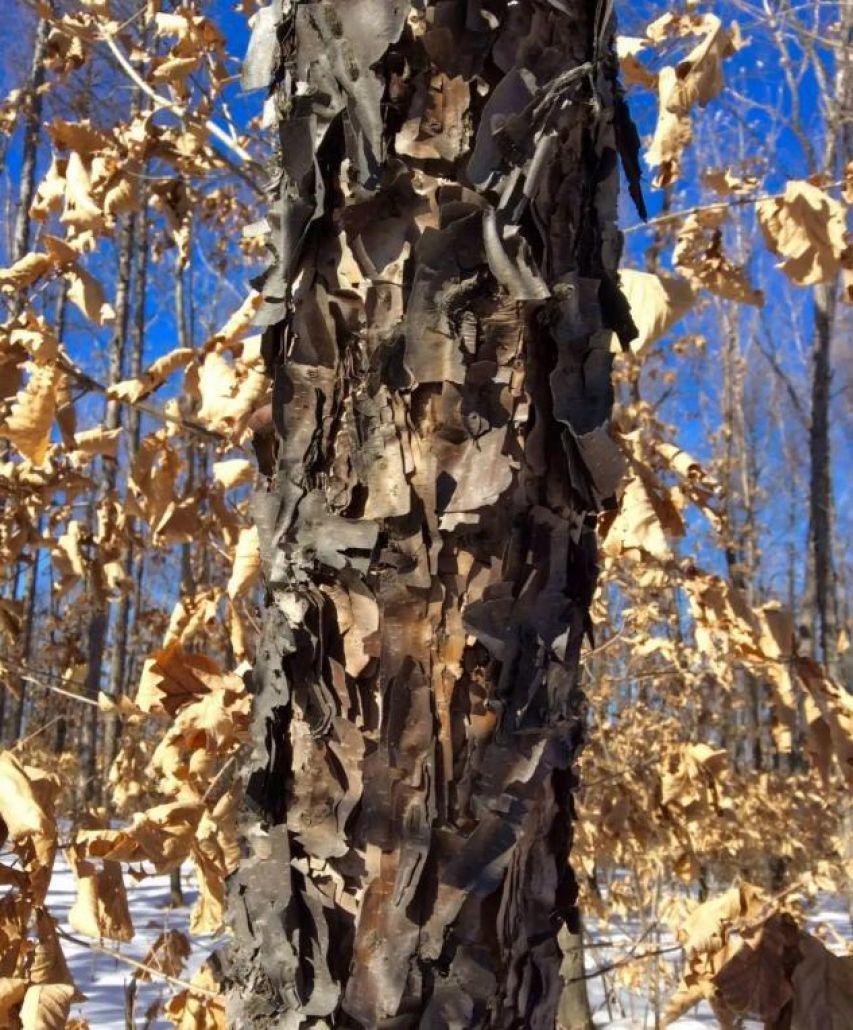 從黑、紅、白交錯斑駁的樹皮來看,這些鐵樺樹似乎和普通樺樹沒什麼兩樣,甚至有些長得張牙舞爪、奇形怪狀,比普通樺樹醜多了,但看它名字中的“鐵”字,就知道它的特殊之處不在於表面。