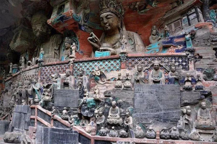 這個千手觀音畫面,是大足寶頂山千手觀音。