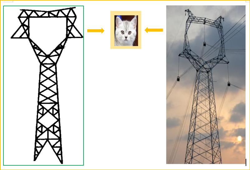 貓頭型,也有人俗稱“貓頭鷹”塔,輸電塔的塔頭像貓,最上部是2個貓耳朵,中間是胖胖的貓頭。酒杯型則是輸電塔的塔頭像酒杯,是貓頭塔的孿生兄弟。