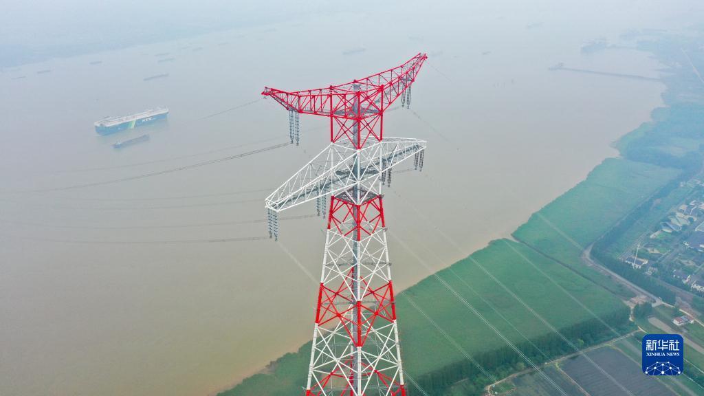 2023年7月2日,江蘇鳳城—梅里500千伏輸變電工程正式建成投運,是國內規模最大的新能源跨長江電力輸電通道(圖片來源:新華社)