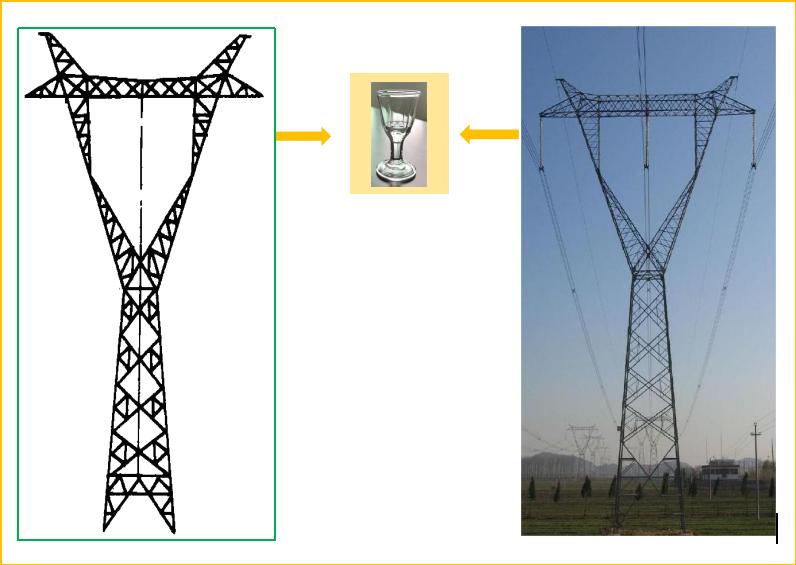 塔頭是塔架截面急劇變化處(也稱頸部)以上的部分,塔頭與塔腿間的桁架部分稱塔身,基礎上面的第一段塔架稱塔腿。後面在描述輸電塔形狀時,講到的“貓頭塔”“酒杯塔”等,主要就是以塔頭的形狀來區分的。