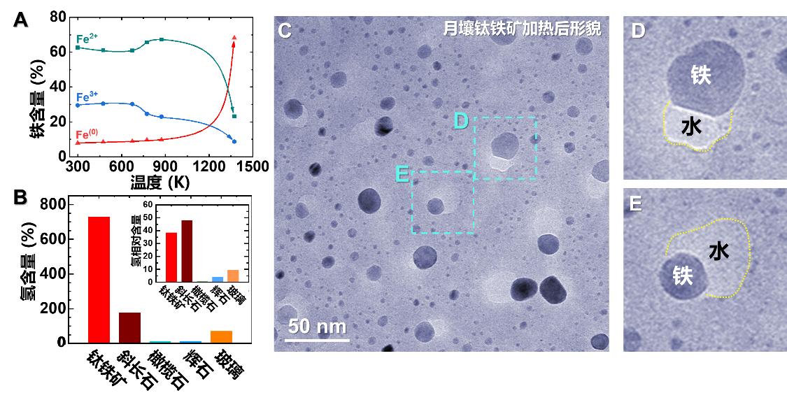 科學家們研究發現,當月壤加熱到高溫的時候,氫會與礦物中的鐵氧化物,發生氧化反應,生成單質鐵和水,當溫度升高到1000℃時,月壤就會融化,水就會以水蒸氣的方式釋放出來。科學家們經過技術分析後認爲,1克月壤大約可以產生51-76毫克的水,也就是1噸月壤可以生產約51-76千克的水,也就是102斤-152斤的水,足夠50個人喝一天了。