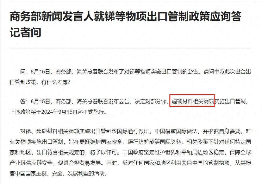 中國一出手就是大殺招,海關總署、商務部發布公告,對超硬材料實施出口管制,這個超硬材料,就包括鑽石,但不僅僅只是鑽石。