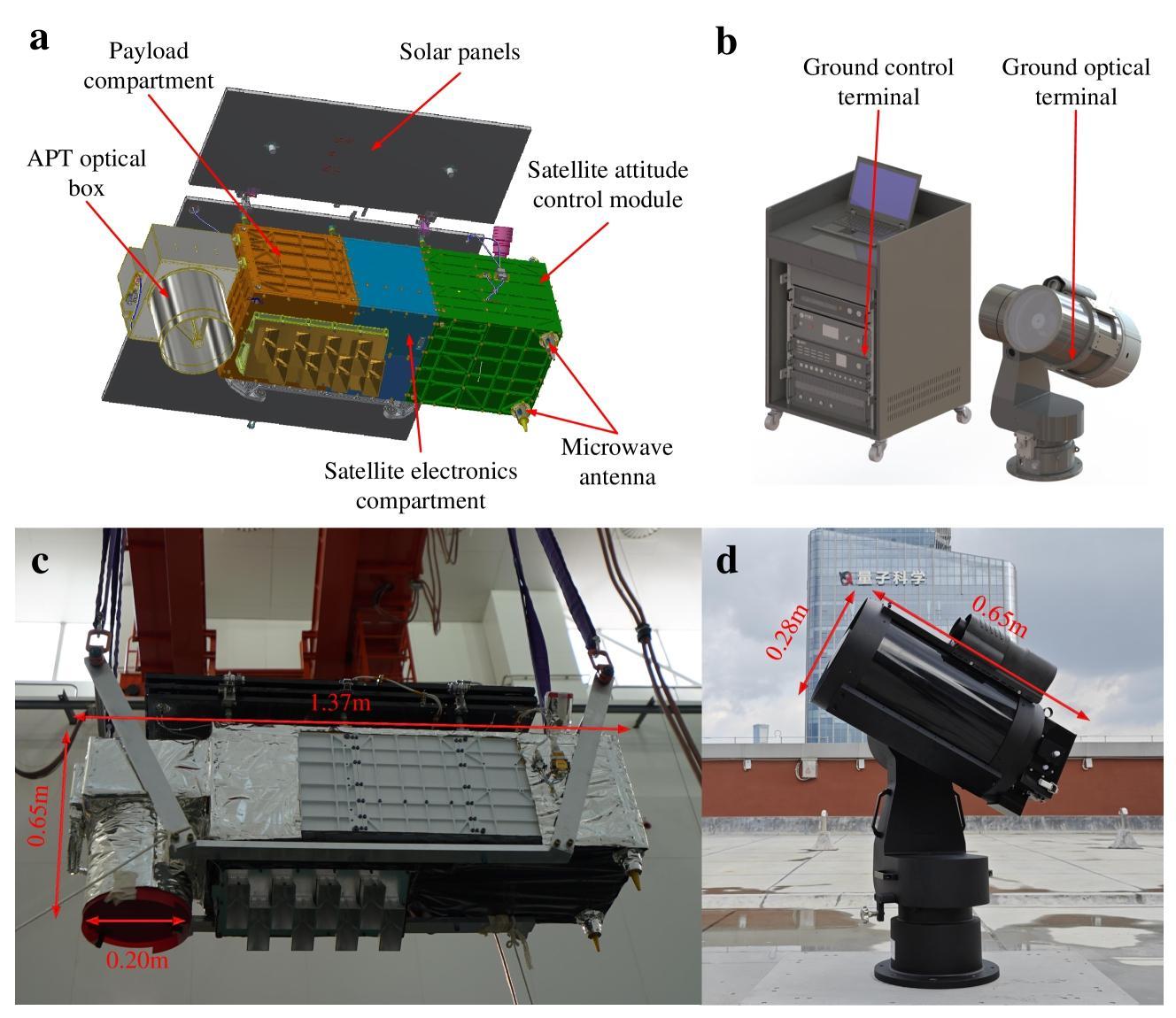 簡單來說,量子衛星就是天上一個望遠鏡,地上一個望遠鏡,把它們精準對齊來傳遞信號。研究人員在墨子號基礎上開發出了微型量子衛星濟南一號,望遠鏡口徑200毫米,整星質量96公斤,有效載荷僅23公斤,體積小但功能強大,於2022年7月發射進入500公里的太陽同步軌道。
