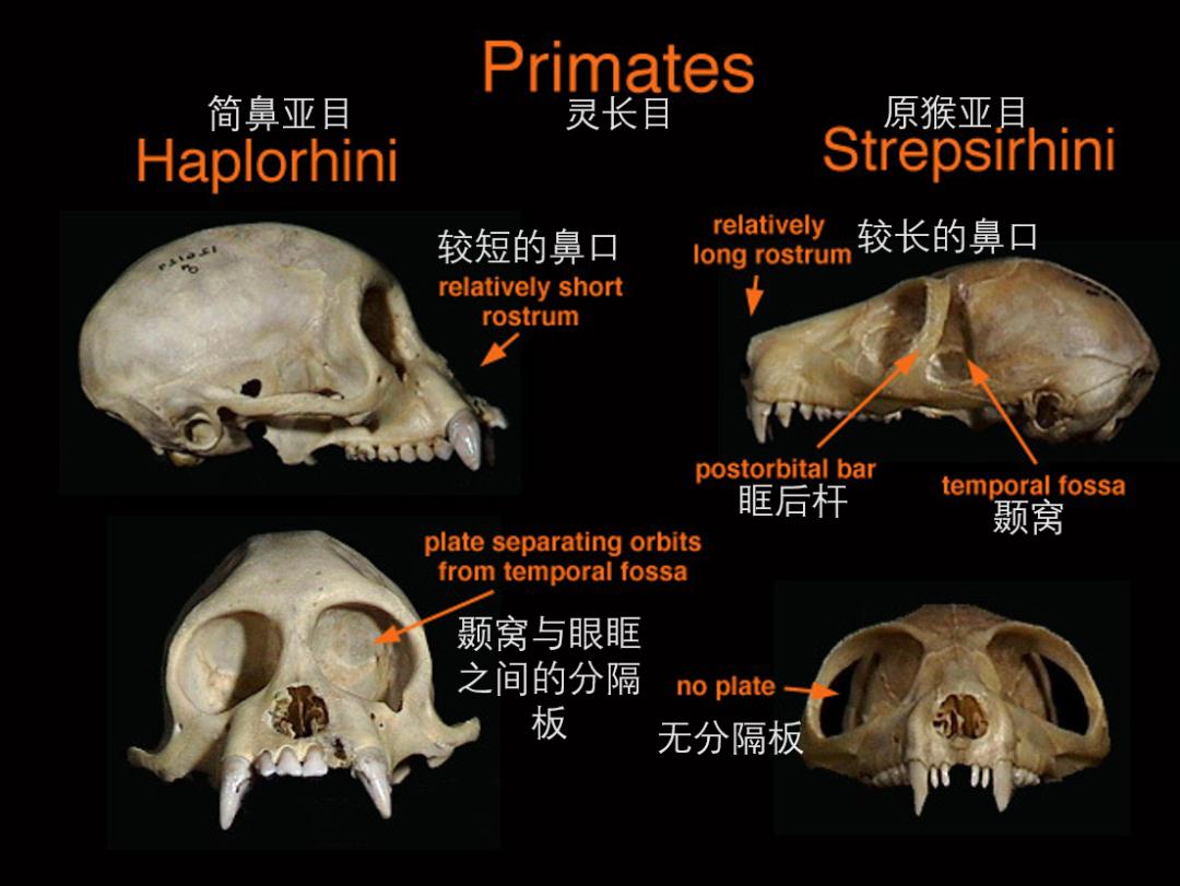 簡鼻亞目和原猴亞目顱解剖差異 (圖片來源:animaldiversity.org,作者漢化)