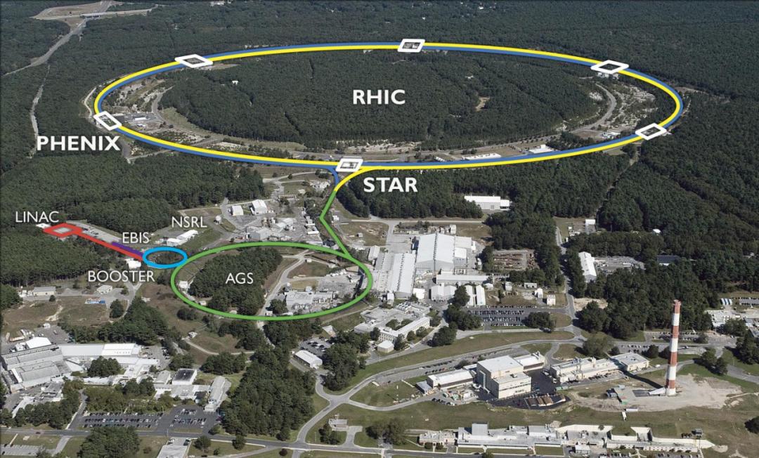 圖中上方的圓環即爲相對論重離子對撞機的輪廓 (圖片來源:美國布魯克海文國家實驗室)