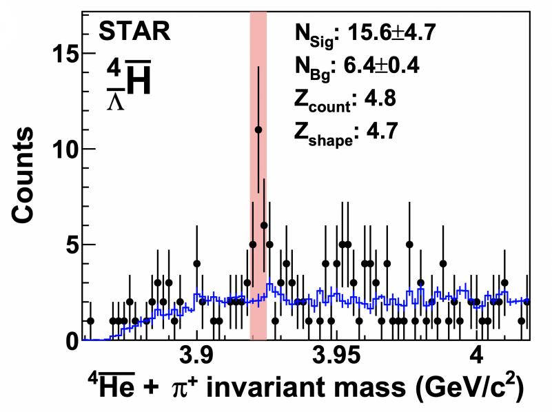 反氦-4與π+介子不變質量譜中的反超氫-4信號 (圖片來源:近代物理研究所)