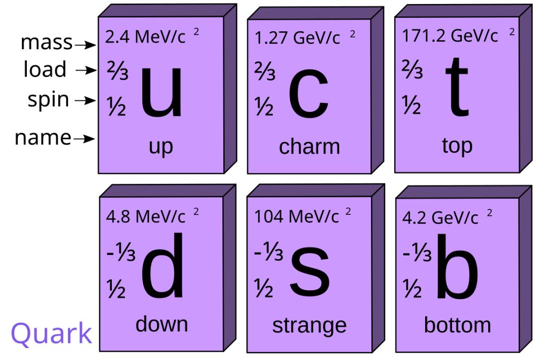 目前已知共有6種夸克(圖片來源:Wikidata)