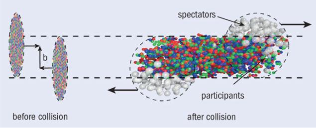 兩束重離子發生對撞,產生大量粒子 (圖片來源:歐洲核子中心)