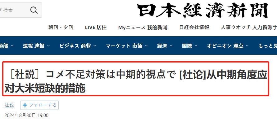 日本經濟新聞還發表了長篇社論 ,名爲:從中期角度應對大米短缺的措施。