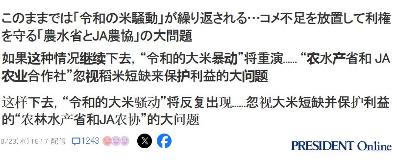 比如,這次的米荒,最核心的矛盾就是主管農業的農協,日本政府和農民之間的矛盾。在日本,農業都是農協說了算,它會和日本政府配合,盤剝日本農民,割百姓韭菜。
