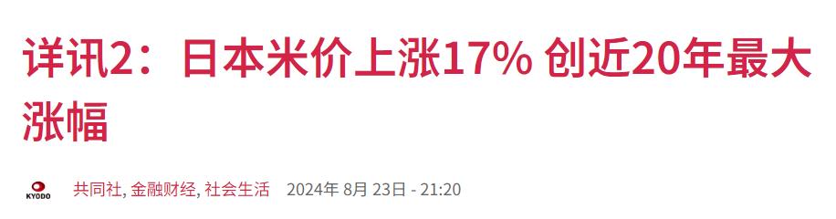 爲了防止有人說我誇張,這裏涉及到的日本大米情況,均以日本自己政府和日媒發佈的信息作爲參考。首先是,日本共同社報道,日本大米價格近期上漲17%。