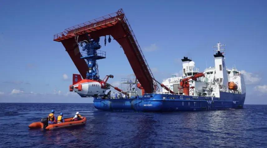 探索一號科考船吊放“深海勇士”號載人潛水器 (圖片來源:深海所)
