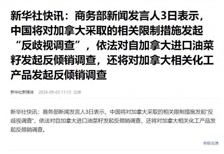 果然,商務部剛宣佈這個消息,加拿大官員一片哀嚎,表示,中國發起的反傾銷調查,讓加拿大深感擔憂,加拿大當局正在密切關注相關情況。