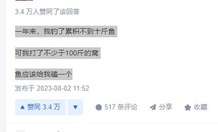 可以說,釣魚的比放生功德還要高,因爲下絕戶網的,一網下去基本是斷子絕孫式的收網。誰還管你可持續發展?藥魚的,更可恨,水裏能遊的一個都逃不掉!電魚的也十惡不赦,滋滋的電流聲,彷彿是那片水生物的喪鐘!手拿鞭炮炸魚的,這些人有一個算一個,對釣魚佬來說,勢不兩立,遇見舉報都是舉手之勞!