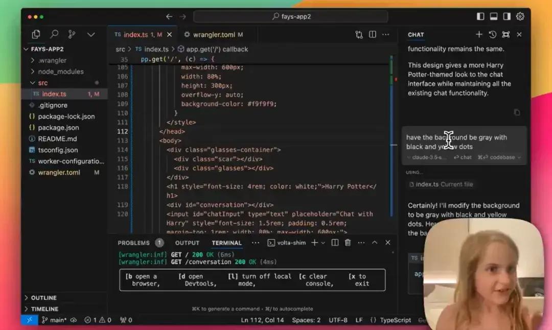 8 歲女孩藉助 Cursor 裏集成的 AI 工具搭建聊天機器人