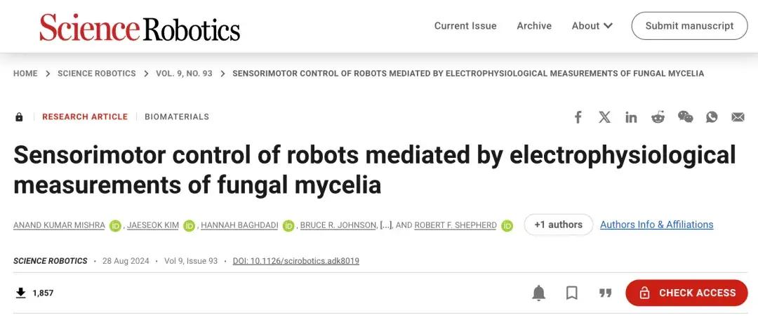 8 月 28 日《科學·機器人學》上刊載論文