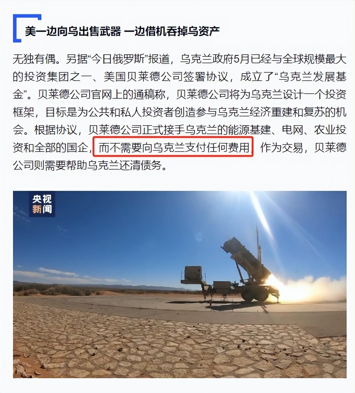 還有,澤連斯基可是把烏克蘭的國有企業全都免費送給了猶太資本,你別看美國援助烏克蘭那麼大方,實際上,人家美國聰明着呢,人家那是借給烏克蘭的,是貸款。想想也是,美國怎麼會做雪中送炭的事,人家自己家發生颶風了,給災民提供的都是750美元的貸款,還是1年內必須還清,否則沒收你所有財產的那種,人家怎麼會好心給你烏克蘭免費援助,那都是要還的。