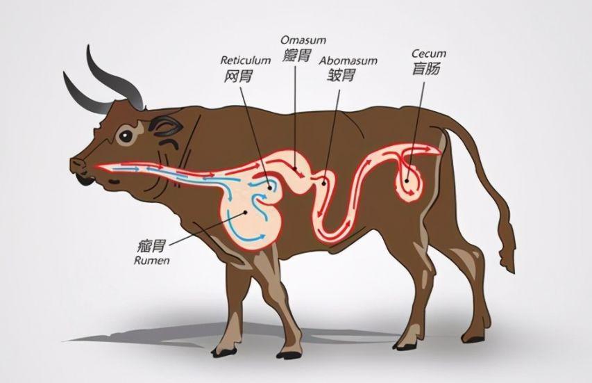 而除了皺胃,牛的其他三個胃裏都有大量的微生物存在,這些微生物能幫助牛分解草料中的纖維素,是牛進行體內消化的重要幫手。