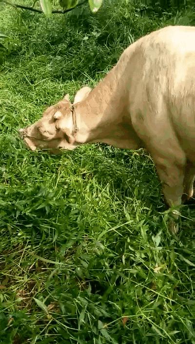 比較熟悉牛的朋友可能經常看到,牛在沒有喫東西的情況下,嘴部仍然會進行咀嚼動作,且嘴裏也真有食物。