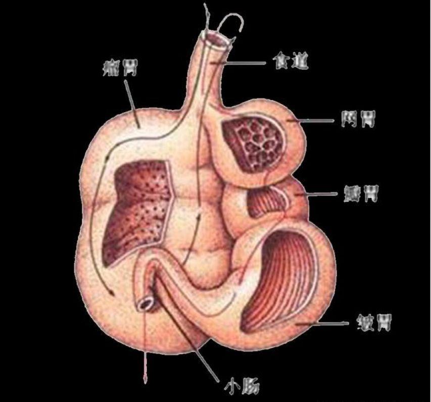 其中,皺胃和我們人類的胃一樣,有腺體,能分泌胃液,幫助牛消化食物。