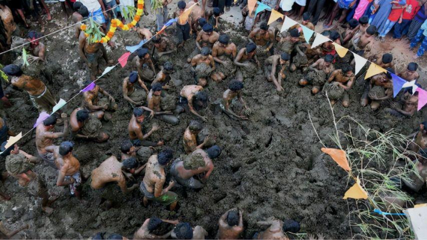 印度安得拉邦一個名叫“潑牛糞節”的傳統民俗節日,每年在印度春節後的第二天舉行。