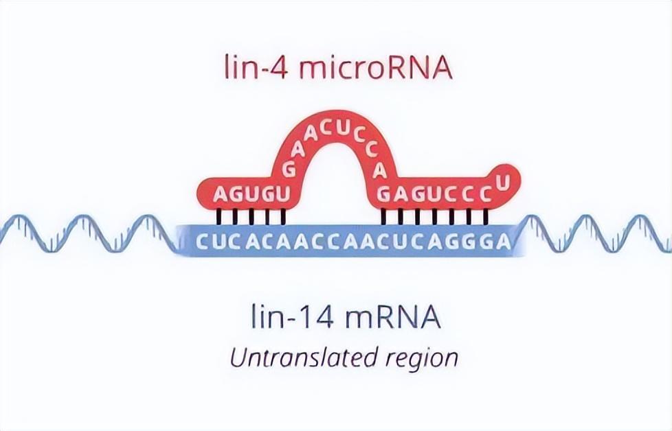 lin-4並不像普通的基因那樣,編碼一段mRNA然後翻譯成蛋白質行使生物學功能。它只編碼一段很小的,只有22個字母的RNA,所以也稱爲microRNA(中文名爲小RNA)。