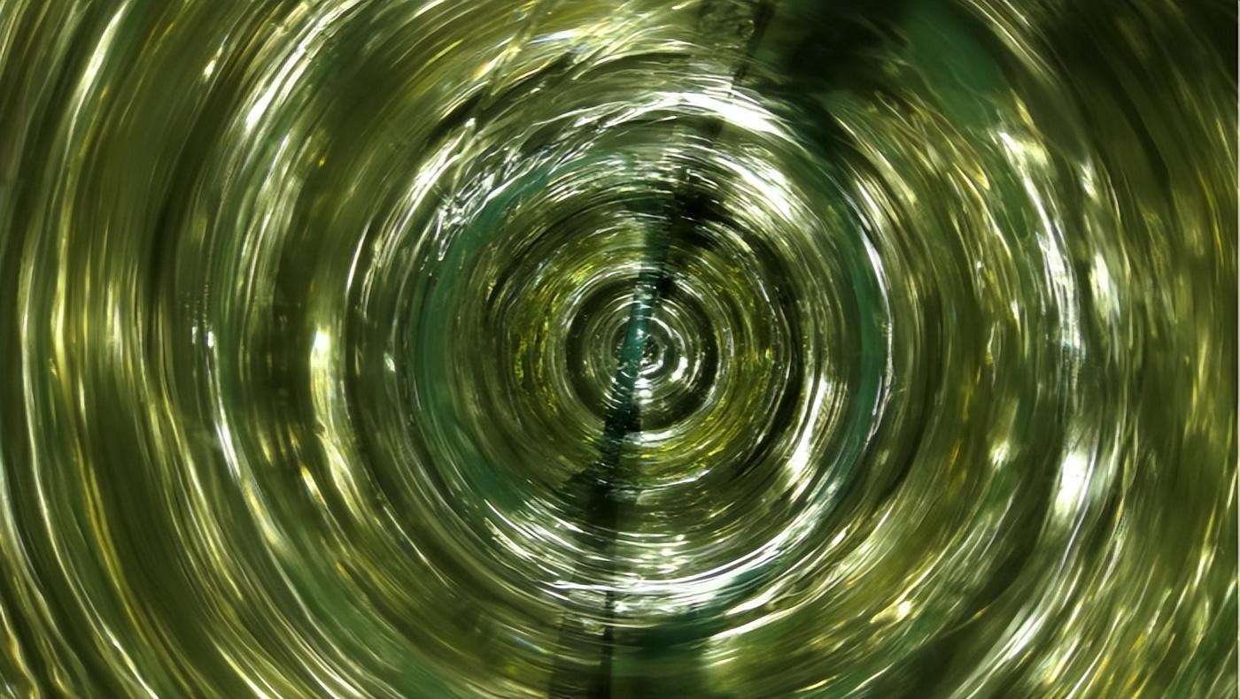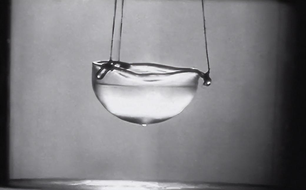 處於超流相的液氦會在杯身內面向上緩慢攀爬,爬過杯口後在杯身底部聚集爲一滴液氦珠,最後在重力作用下滴落(圖片來源:Alfred Leitner