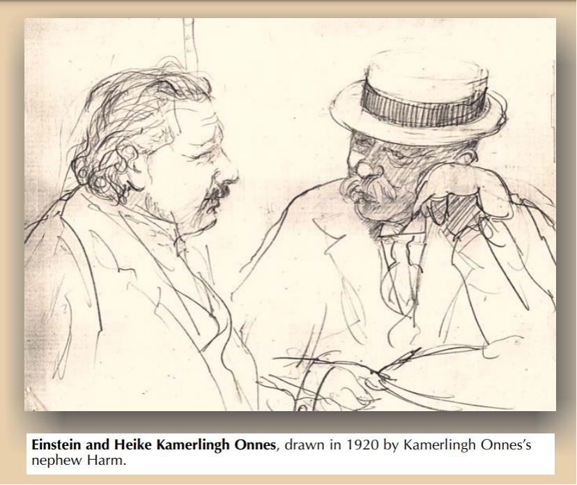 1911年2月,愛因斯坦第一次訪問萊頓大學,他渴望見到洛倫茲和卡末林·昂尼斯,想要參觀後者著名的低溫實驗室,因爲他對於電阻與低溫關係的研究很感興趣。其實早在1901年,22歲的愛因斯坦剛從蘇黎世理工學院畢業,就曾在明信片貼上一張郵票,附上他最近發表的關於分子間作用力的論文,郵給了卡末林·昂尼斯,希望能申請到助教獎學金。然而,卡末林·昂內斯當時並沒有回覆愛因斯坦。