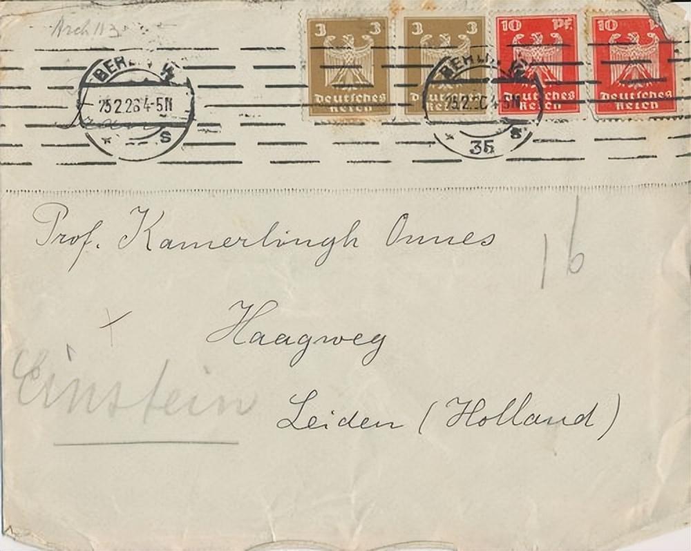 愛因斯坦致唁伊麗莎白夫人的信封 (圖片來源:萊頓布爾哈夫博物館)