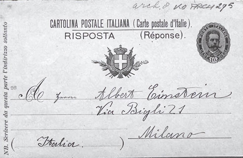 愛因斯坦1901年4月12日申請萊頓實驗室助理的明信片(圖片來源:萊頓布爾哈夫博物館)