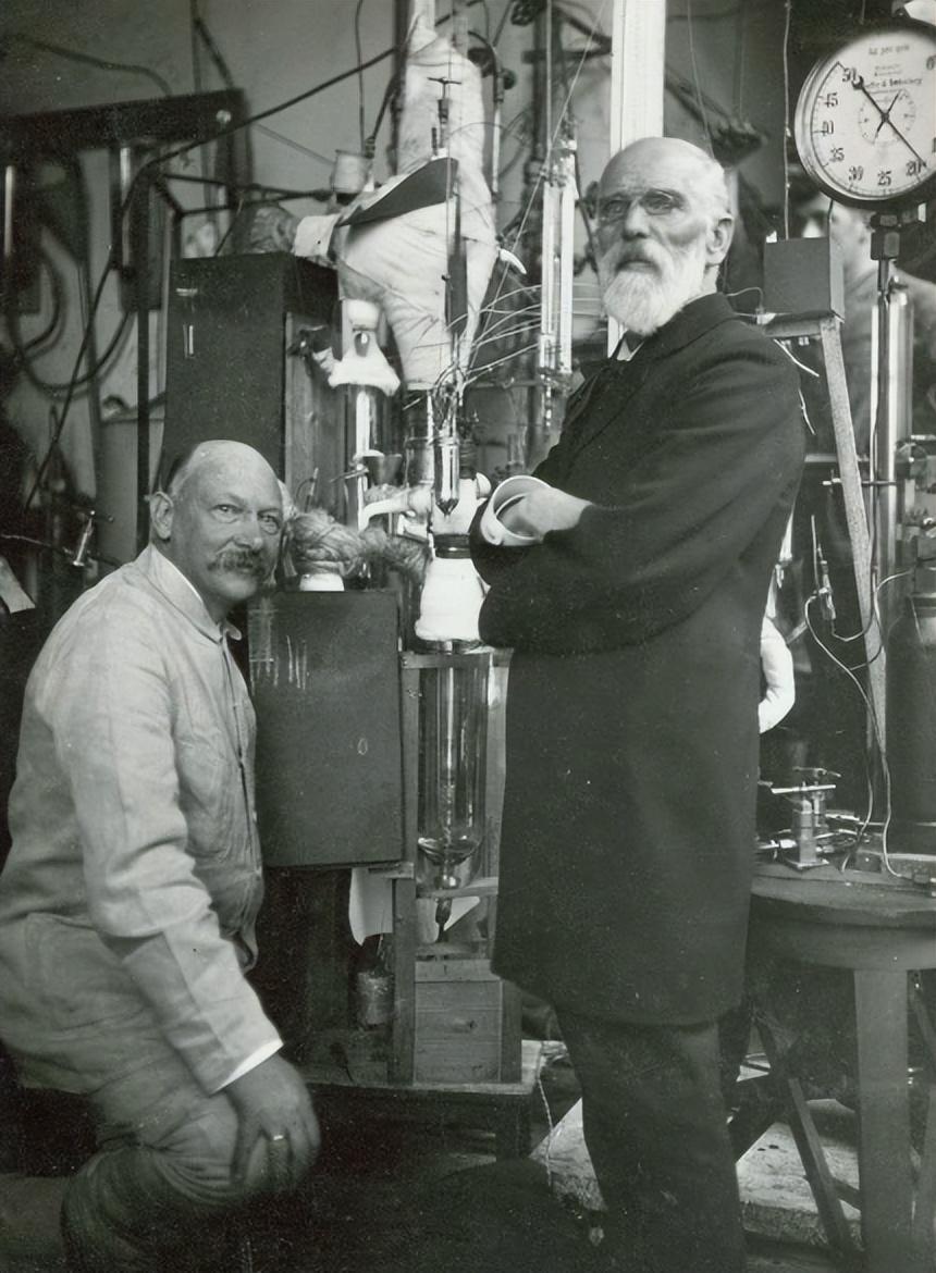 學術合作近四十年的老朋友卡末林·昂內斯(左)和範德瓦爾斯 (圖片來源:萊頓大學《卡末林·昂內斯的筆記》)