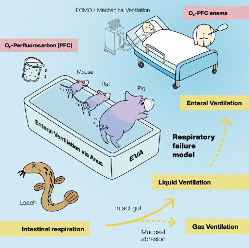 研究團隊開發了兩種新奇的呼吸方法:氣體腸道通氣(g-EVA)和液體腸道通氣(l-EVA)。