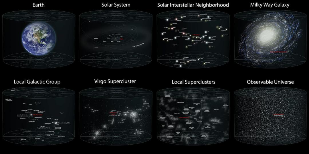 衆所周知,地球所處的太陽系是銀河系的一部分;銀河系、仙女座星系等其他一系列較小的星系都隸屬於本星系羣;本星系羣又和大約一百個星系羣、星系團同屬於室女座超星系團(本超級星團)。